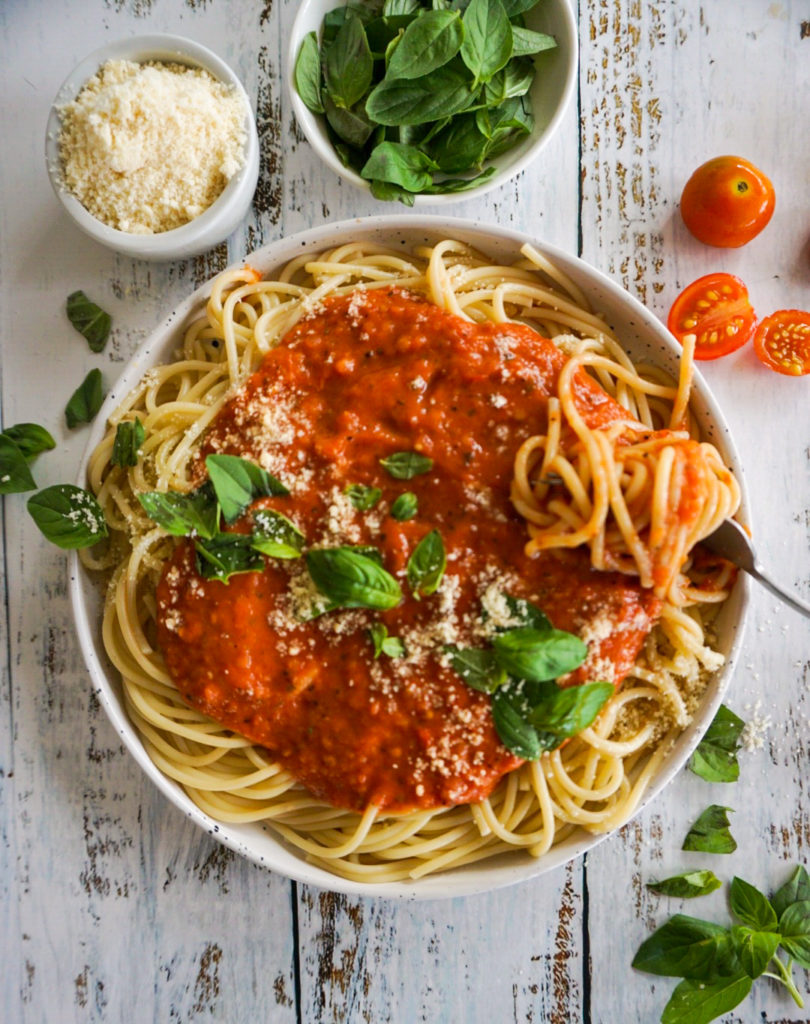 I actually really like to plan my meals ahead of time. It clears up space in my head; one thing less to think about. I also love to make big batches of things (tomato sauce for example); use a bit the day you make it, store some in the refrigerator for in a couple of days and freeze the rest in family size containers for later. Once the works, three times (or more) the joy! Ready to get started!?